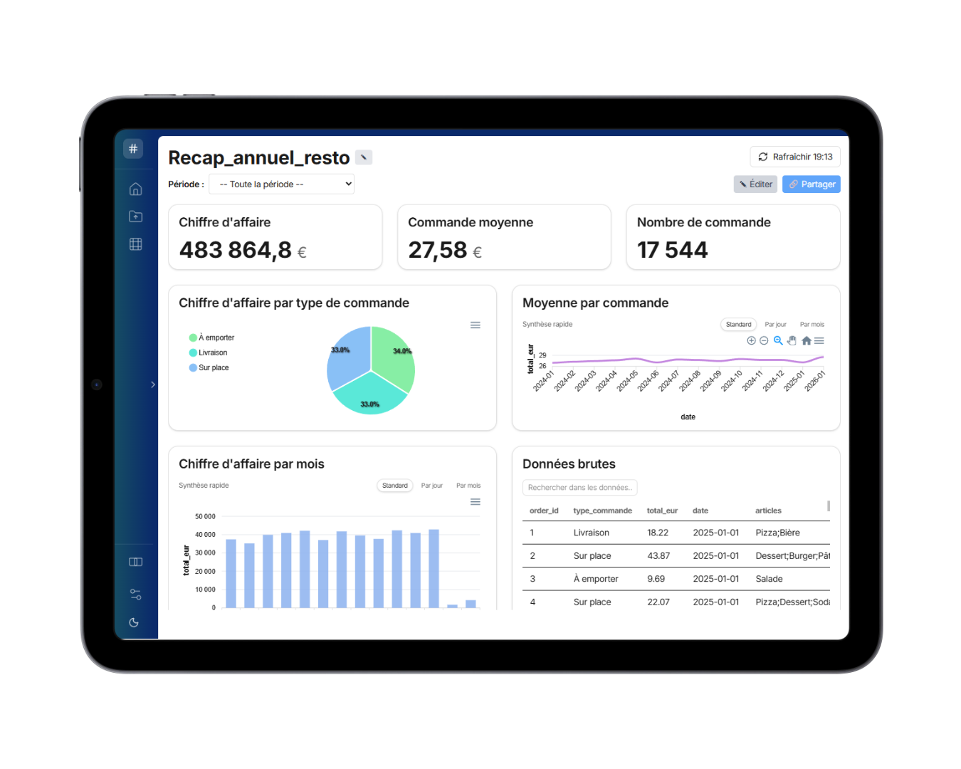Visualisez vos indicateurs clés dans un tableau de bord clair, partageable et toujours à jour.